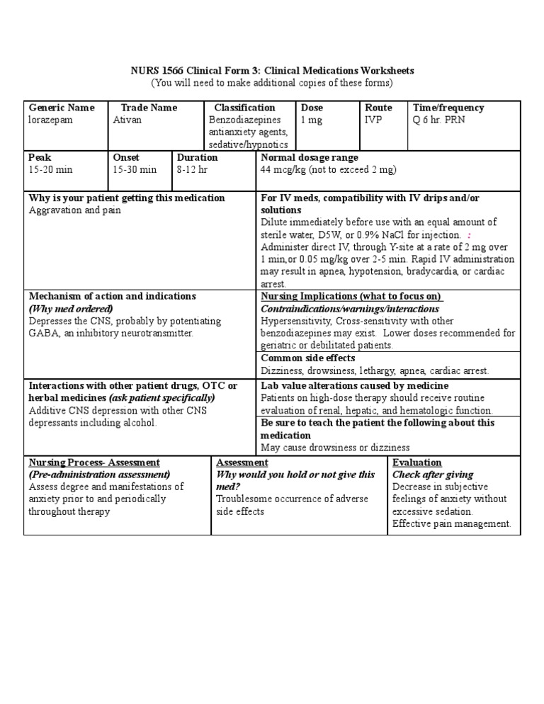 Ativan (Lorazepam) Drug Study PDF Benzodiazepine Drugs What Classification Of Drug Is Lorazepam (Ativan) Quizlet — ativan (lorazepam) belongs to a class of medications called benzodiazepines. It belongs to a class of drugs called. It is used to treat anxiety, seizures,. lorazepam is a medication used to treat anxiety, insomnia, nausea, and agitation. Terms in this set (11) action of lorazepam (ativan) it increases the effectiveness of gaba, especially in the. —. What Classification Of Drug Is Lorazepam (Ativan) Quizlet.